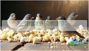 When preparing popcorn kernels for your feathered friends, you’ll want to steer clear of harmful seasonings and artificial flavors that make store-bought varieties dangerous.