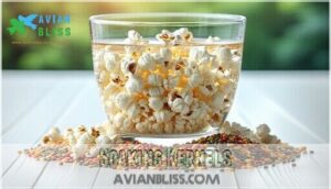 Softening kernels through soaking makes popcorn kernels much safer for smaller birds.