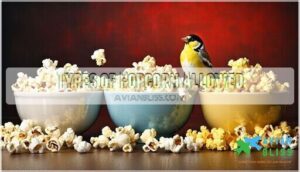 You’ll want to stick with plain, air-popped popcorn or unpopped kernels when feeding birds, as these options provide the safest nutritional benefits without harmful additives.