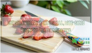 Once you’ve cleaned your strawberries, size matters for bird safety. Large pieces create choking hazards, especially for smaller birds. Cut strawberries into appropriately sized portions to prevent swallowing difficulty.