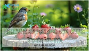 Removing these parts makes strawberries safer and easier for birds to enjoy, focusing their attention on the nutritious, sweet fruit portion.
