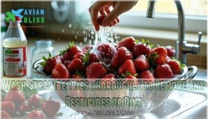 Organic strawberries need less intensive safe cleaning, but all berries benefit from proper rinsing methods before serving to your feathered companions.