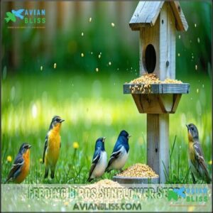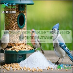 Proper feeder cleanliness guarantees no harmful buildup. Skip salted sunflower seeds—birds eat sunflower seeds safely only when unsalted.
