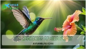 You’ll see birds like hummingbirds and some ducks achieve this through specialized wing muscles, rapid wingbeats, and unique body positioning that generates lift on both upstrokes and downstrokes, utilizing specialized wing muscles.