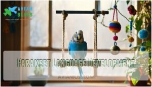 Blue parakeet language development happens through repetition and associative learning. These talking birds can acquire hundreds of words when exposed to consistent human speech. Your parakeet’s speech patterns emerge gradually, starting with simple sounds before progressing to complete words and phrases. The key lies in their natural mimicking abilities and your patience in nurturing their vocal talents. Understanding vocalization techniques is essential for effective parakeet speech training and development.
