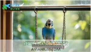 This positive reinforcement strengthens their talking ability through behavior shaping. Reward systems work best with high-value treats like millet, while clicker training and target sticks help focus their vocal learning efforts during structured sessions.