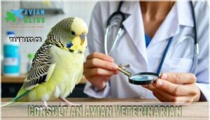 When facing tail feather loss in your budgie, seeking professional veterinary care becomes essential for proper diagnosis and treatment.