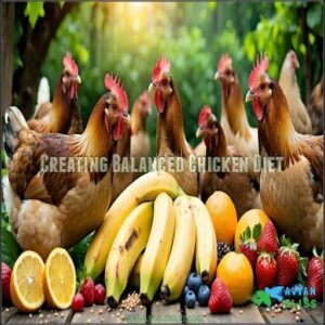 By rotating fruits and monitoring portion sizes, you’ll guarantee they get the right fuel for egg production and overall well-being.