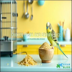 Cooked grains like pasta and brown rice make excellent bird treats when prepared simply.