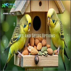 Offer seed variety like millet, sunflower, or pumpkin seeds, which pack energy and nutrients. For nuts, almonds and walnuts are excellent choices, but use sparingly—they’re calorie-dense.