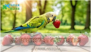 You’ve probably wondered if your parakeet can safely enjoy those juicy strawberries you’re snacking on.