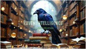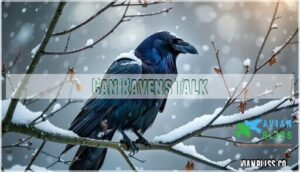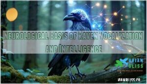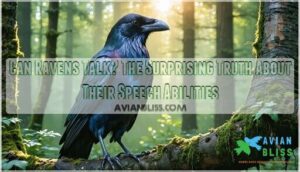 You’ll discover that ravens possess remarkable intelligence that directly connects to their ability to produce complex sounds and mimic human speech.