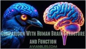 Though brain size differs dramatically, you’ll find fascinating cognitive parallels between raven and human neural architecture.