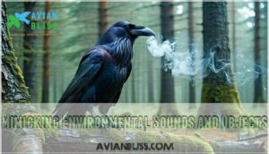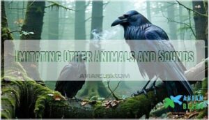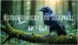 You’ll discover ravens use bird mimicry as both survival tool and playful learning method.