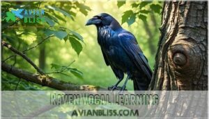 You’ll find that ravens learn new sounds through careful observation and practice, much like how you might pick up a new language by listening to conversations around you.