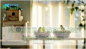When relocating budgie eggs, keep the new nest within visual contact and auditory range of the original location. This gradual relocation approach helps maintain familiar landmarks that support your budgie’s nesting instincts.