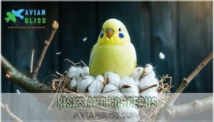 Budgies can lay too many eggs, which strains their health and depletes essential nutrients like calcium. You’ll notice lethargy, weakness, or egg-binding if your hen’s overproducing clutches frequently.