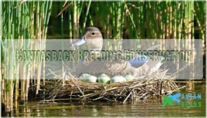 You’ll find canvasback conservation efforts focus on protecting their breeding and wintering habitats, which have declined by roughly 50% since 1950.