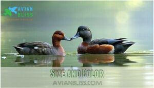 When you spot a canvasback duck, you’ll notice striking size differences between male and female plumage.