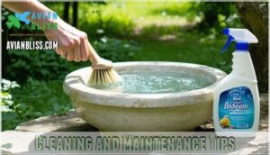 Before winter, empty and cover it to avoid cracks. These easy-to-clean tips make garden bird bath maintenance a breeze year-round!