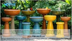 You’ve got options! Bird baths come in white, teal, lavender, and more, offering stylish choices for outdoor spaces.