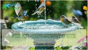 Think about safe depth—around 2.5 inches is perfect for birds to bathe comfortably.