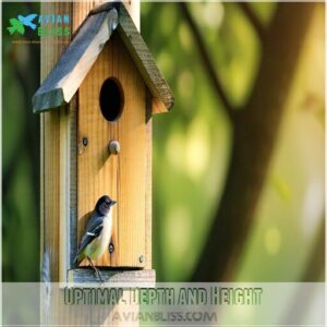 Don’t forget species-specific preferences—like wrens, who need compact homes, or bluebirds, who favor open fields with preferred facing directions.