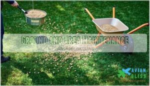 You’ll need to maintain the area beneath your feeders just as carefully as the feeders themselves, since scattered seeds and hulls create perfect breeding grounds for harmful bacteria and mold that can sicken visiting birds.