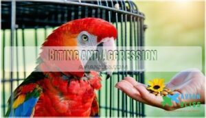 Fear-based biting happens when birds feel cornered. Hormonal aggression peaks during breeding season.