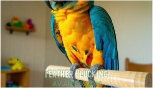 Feather plucking could signal stress, illness, or poor diet. Aggression often arises from fear, territorial instincts, or lack of socialization.
