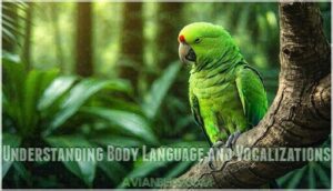 Vocalization nuances, from soft chirps to loud squawks, reveal mood. Context matters—combine postures and sounds to decode parrot behavior and address their needs effectively.