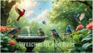 Picture yourself sipping coffee as a Northern Cardinal flashes past your window—classic proof of common birds in Illinois.