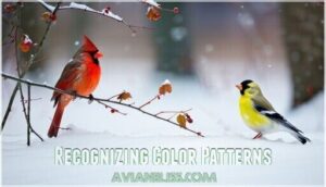 - Size, shape, color, and behavior are your identification keys – Notice overall proportions, wing spans, beak shapes, and distinctive color patterns like the Cardinal’s red plumage or Goldfinch’s bright yellow