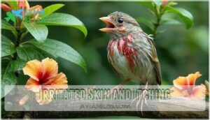 This relentless itching disrupts normal preening patterns, signaling serious bird mite symptoms requiring immediate attention.