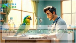 Consulting an avian veterinarian provides essential expertise when bird health checks reveal suspected mite infestations.