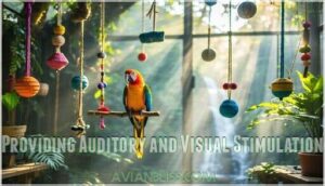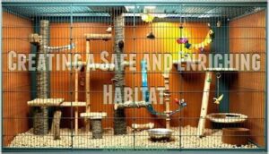 By implementing these strategies consistently, you’ll transform their space into a thriving habitat where natural behaviors flourish, creating happier, healthier birds who’ll reward you with vibrant personalities.