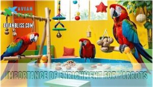 Proper parrot enrichment consistently delivers remarkable benefits that’ll transform your feathered friend’s quality of life.