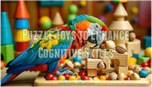 Consider browsing parrot puzzle selections for more options. The Cognitive Benefits are remarkable—parrot cognitive development flourishes through consistent parrot foraging activities that prevent boredom while building problem-solving confidence.