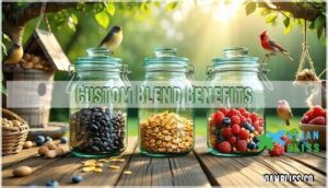 Plus, it’s satisfying to see birds enjoy what you’ve prepared. Want to perfect your mix? Balance variety with what local birds love most—because happy birds always come back to enjoy their favorite custom blends.