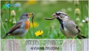 You’ll find generalist beaks on birds like house sparrows and robins, which handle omnivorous diets with ease.