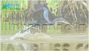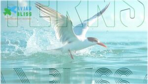 - You can identify these diving birds by watching their unique behaviors: pelicans’ expandable throat pouches, cormorants’ distinctive wing-drying poses, anhingas’ spear-like fishing technique, and terns’ precision plunge-diving from heights up to 50 feet.