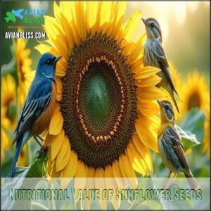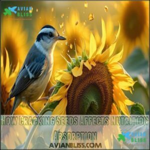 Their gizzards handle the crushing, improving Digestive Efficiency and maximizing Nutrient Absorption. This process guarantees birds extract the best sunflower seed nutrition with minimal energy loss, contributing to Energy Conservation.