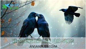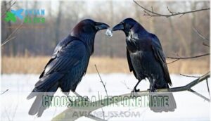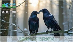 So do crows mate for life? They’re remarkably close, practicing social monogamy that creates lasting partnerships until death naturally parts them.