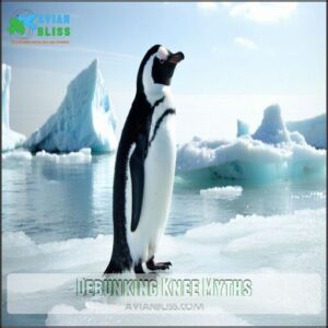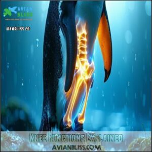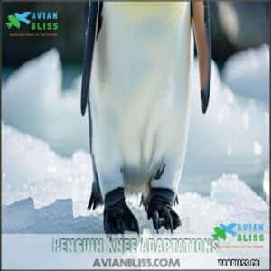 You’ll notice penguin knees have evolved specifically to balance life between land and sea, with joints positioned higher in their bodies for ideal swimming efficiency.