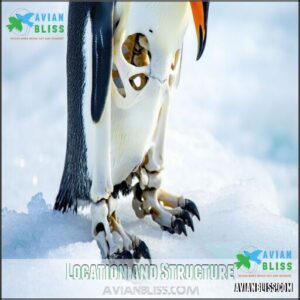 Their concealed knee structure helps maintain balance on slippery terrain and supports their upright posture during egg incubation.