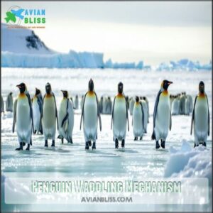 You’ll find penguin knees maintain a vital 90-degree angle that guarantees a low center of gravity for their characteristic waddle while supporting their streamlined body shape.