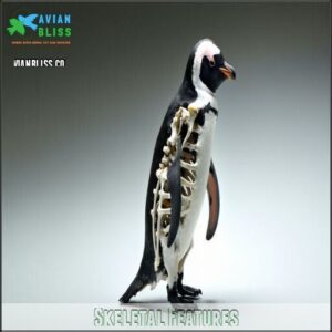 The penguin skeleton accommodates both streamlined movement in water and stability on land, blending functionality with evolutionary design.