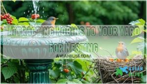 Your goal: craft a robin-friendly space that mimics their natural habitat, encouraging successful breeding without disrupting their delicate nesting habits. Remember, a thoughtful approach can turn your yard into a robin’s preferred breeding ground, making it an ideal location for them to thrive.