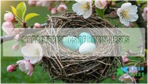 Robin nests are engineering marvels, painstakingly designed with precision. Their nest dimensions typically span 6-8 inches wide and stand 3-6 inches tall, weighing a mere ounce.