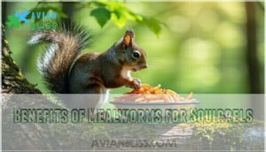 Because of their Seasonal Availability and high mealworm nutrition, they’re a reliable protein source in the wild, aiding ecosystem integration and influencing what squirrels eat.